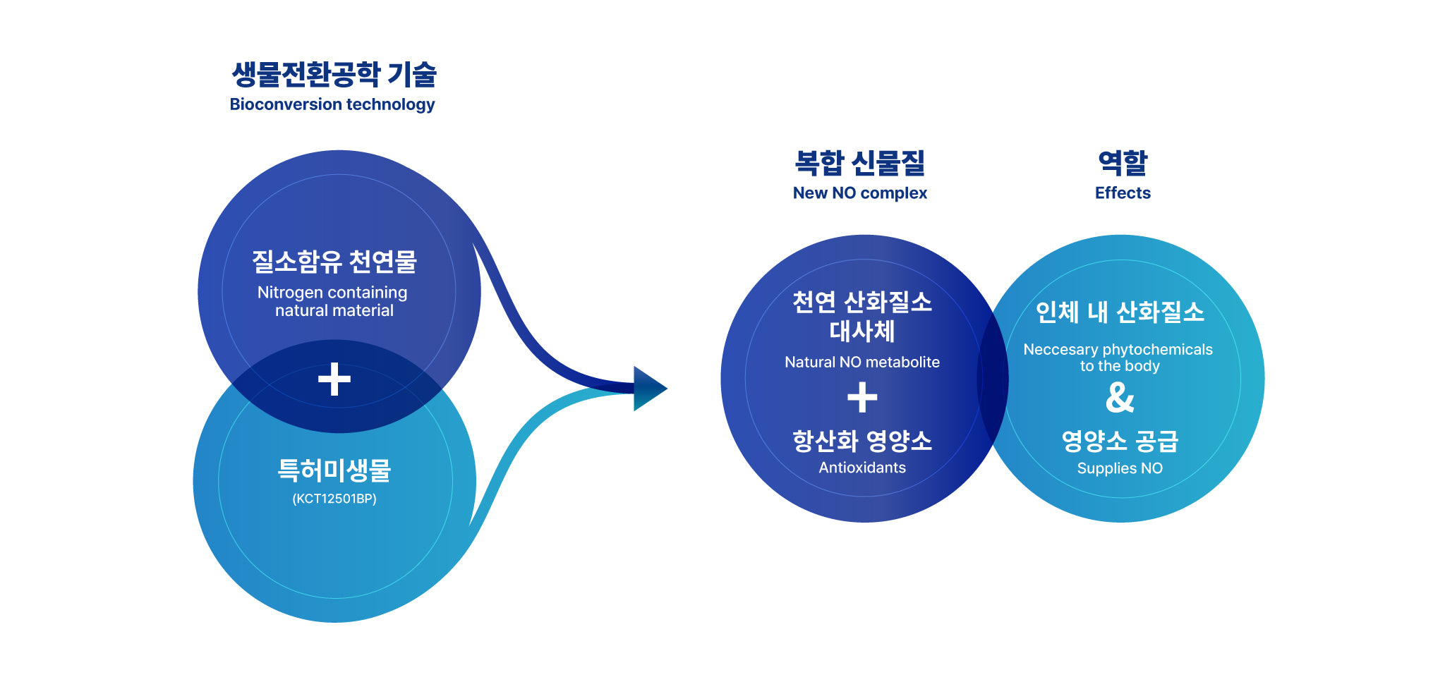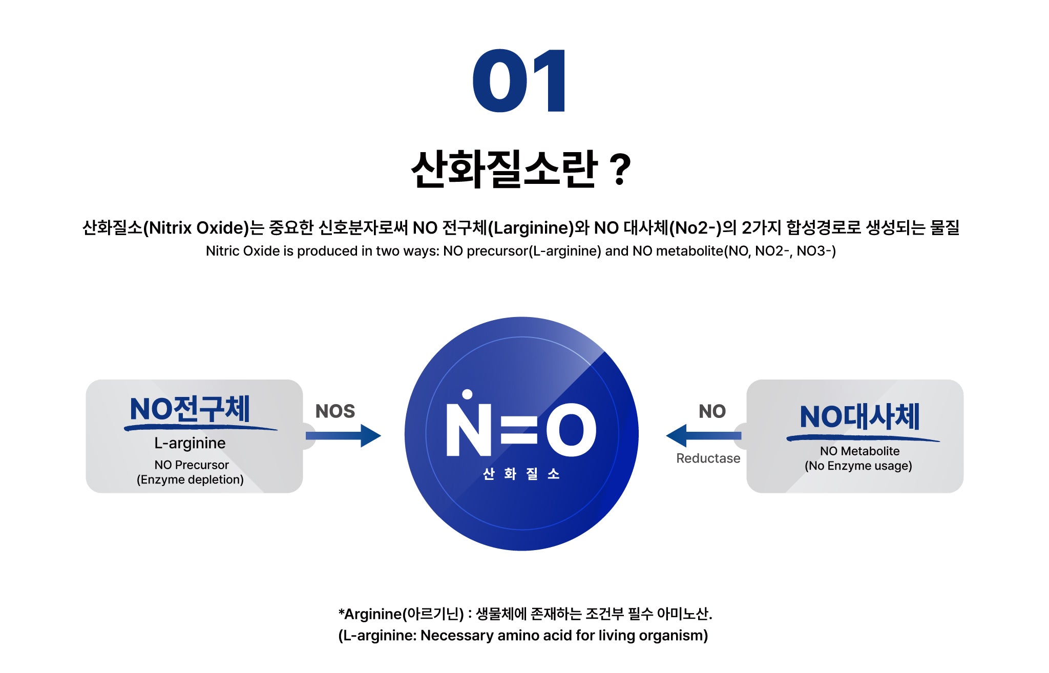 NO는 혈관 내 엔도텔리움 세포에서 생성되며 혈관을 확장시켜 줍니다. 혈압을 감소시키고 혈액의 흐름을 개선함으로써 심혈관 질환의 위험을 줄여줍니다. 또한 NO는 혈전 형성을 억제하고 혈액순환 개선 향상에 도움을 줍니다.